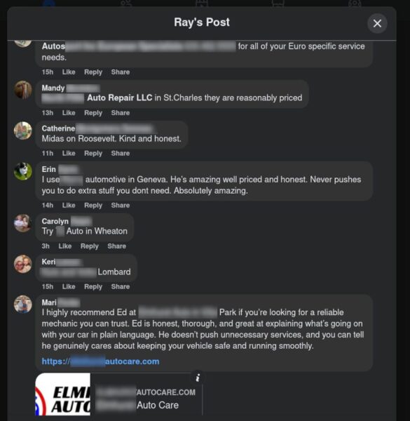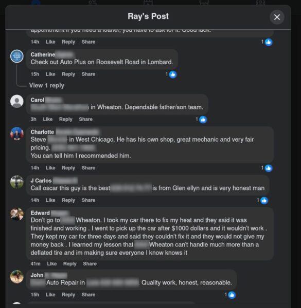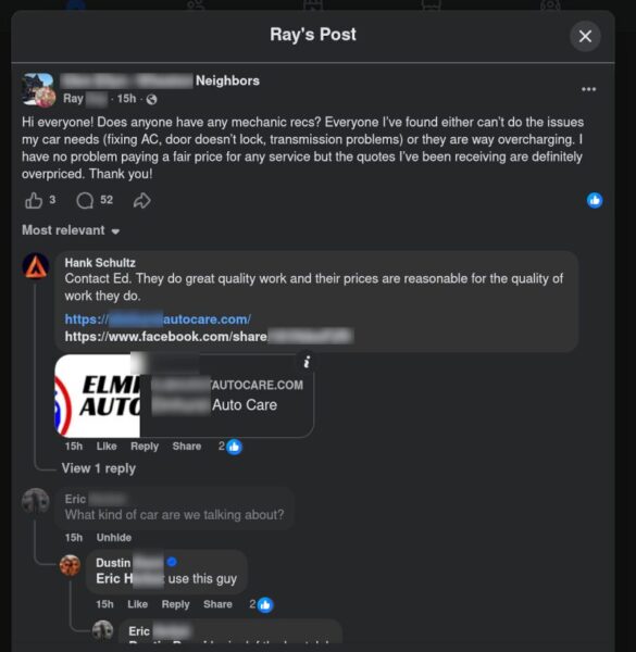 I happened to be browsing Facebook today for any interesting free items in my Buy Nothing groups and I saw a post asking for recommendations for mechanics: